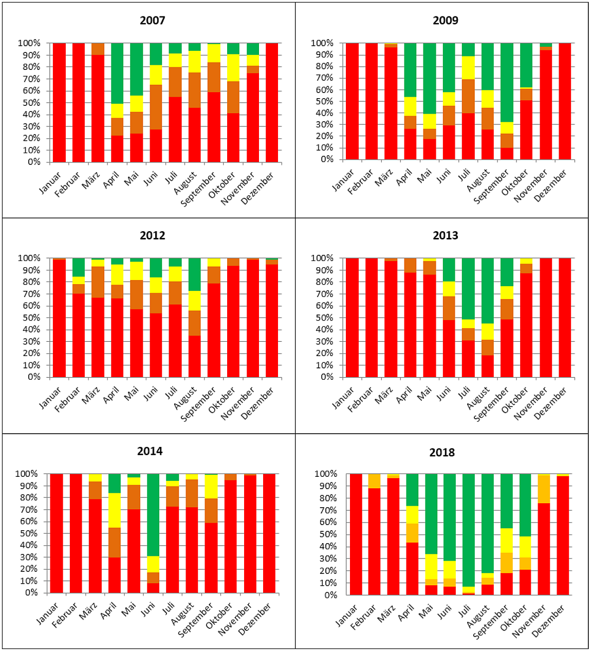 Die Verteilung der Saugspannungswerte variiert von Jahr zu Jahr sehr stark.