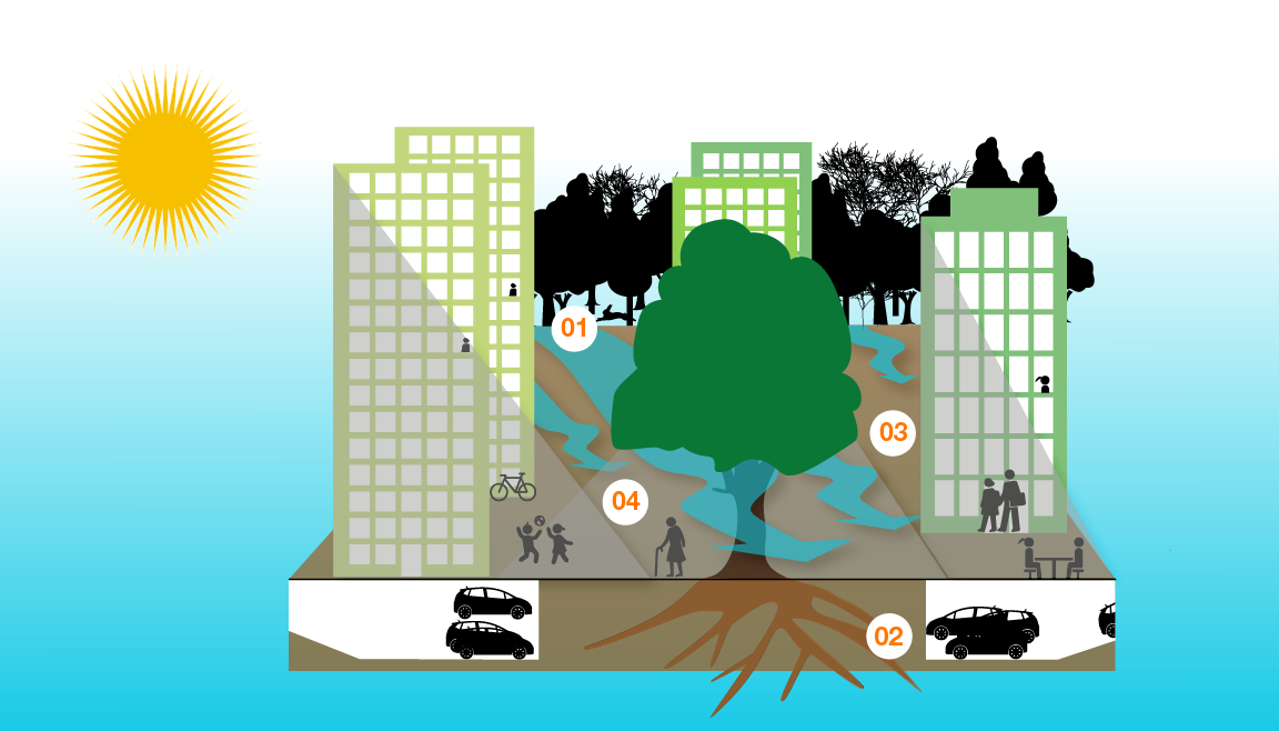 - Früh im Planungsprozess: Planung von Unterbauten mit der Planung grosskroniger Bäume koordinieren