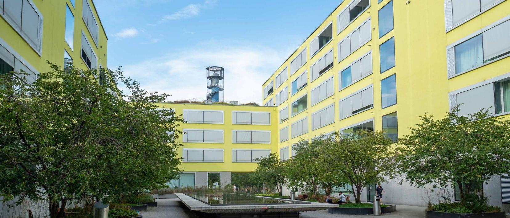 Mit einer optimalen Ausrichtung der Gebäude oder durch architektonische Elemente kann der gebäudenahe Freiraum beschattet werden. Solche Freiräume haben an heissen Tagen eine höhere Aufenthaltsqualität.