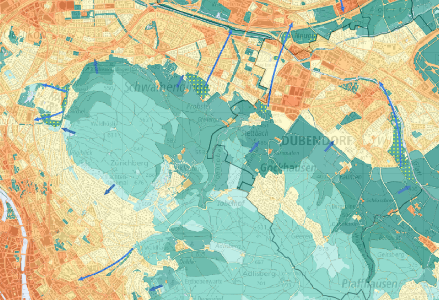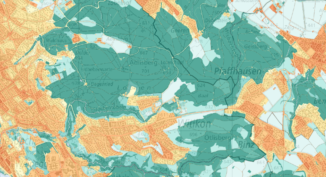 Mit dem Klimawandel wird es in urbanen Gebieten zunehmend heisser. Vor diesem Hintergrund wurde die klimatische Situation heute und in Zukunft flächendeckend für den Kanton Zürich modelliert. Die Ergebnisse enthalten Informationen zu Lufttemperaturen, Kaltluftströmen und bioklimatischen Bedingungen am Tag und in der Nacht während einer sommerlichen Schönwetterlage. Sie werden in Analyse- und Bewertungskarten sowie einer übergeordneten Planungshinweiskarte zusammengefasst.