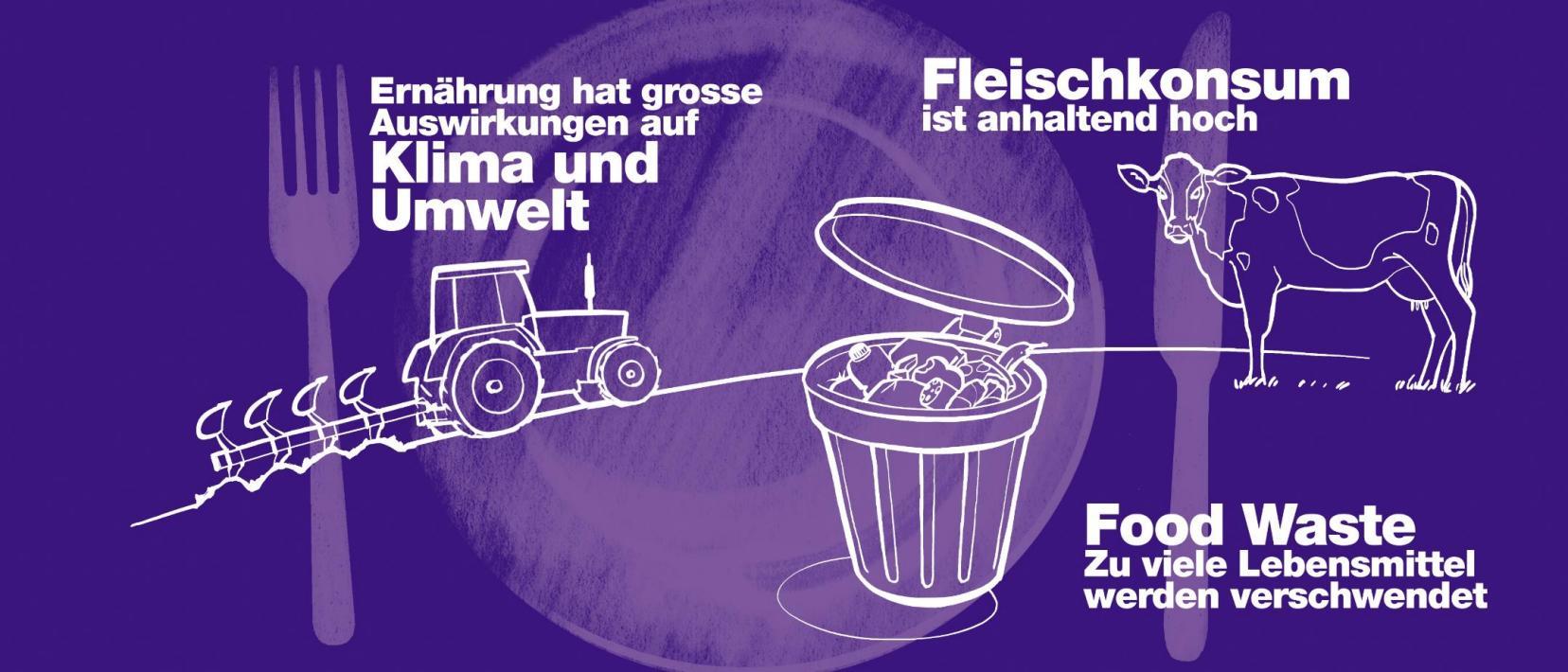 Was wir essen hat grosse Auswirkungen auf Umwelt und Klima. Es ist entscheidend, wie Lebensmittel produziert werden, und was konsumiert wird. Zu einer umweltfreundlichen Ernährung gehört auch das Vermeiden von Lebensmittelverlusten (Food Waste). Aktuell wird ein Drittel aller Lebensmittel verschwendet.