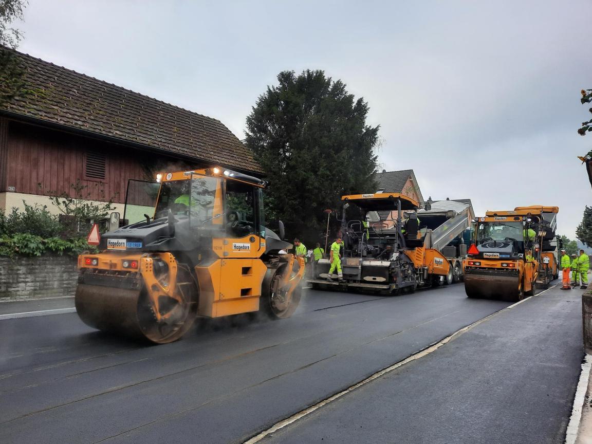 Innerorts wird wegen hoher Verkehrsbeanspruchung ein Standardbelag mit höherer Stabilität und Lebensdauer eingesetzt.