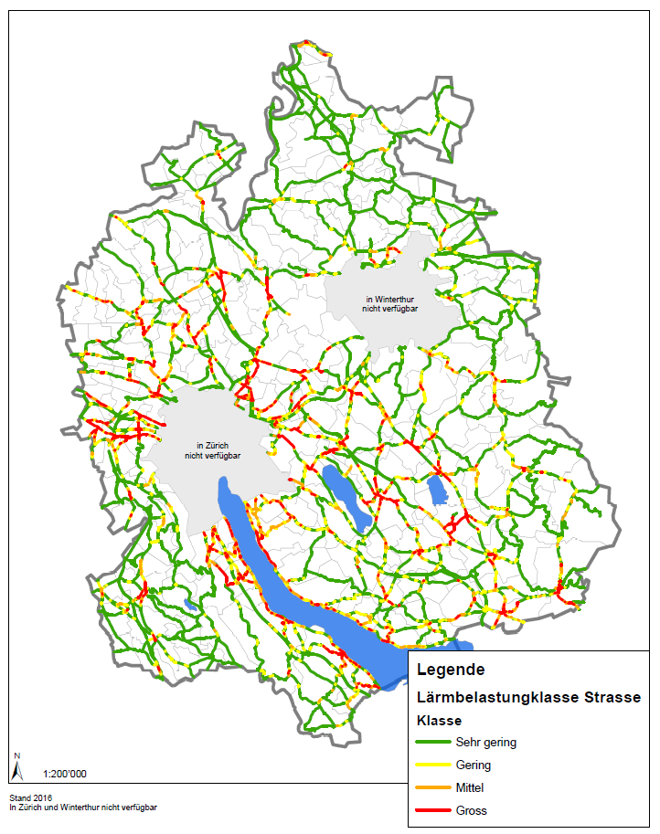 Ausserhalb der Städte Zürich und Winterthur leben im Kanton Zürich etwa 180’000 Personen über dem Immissionsgrenzwert. Davon sind ca. zehn Prozent über dem Alarmwert belastet.