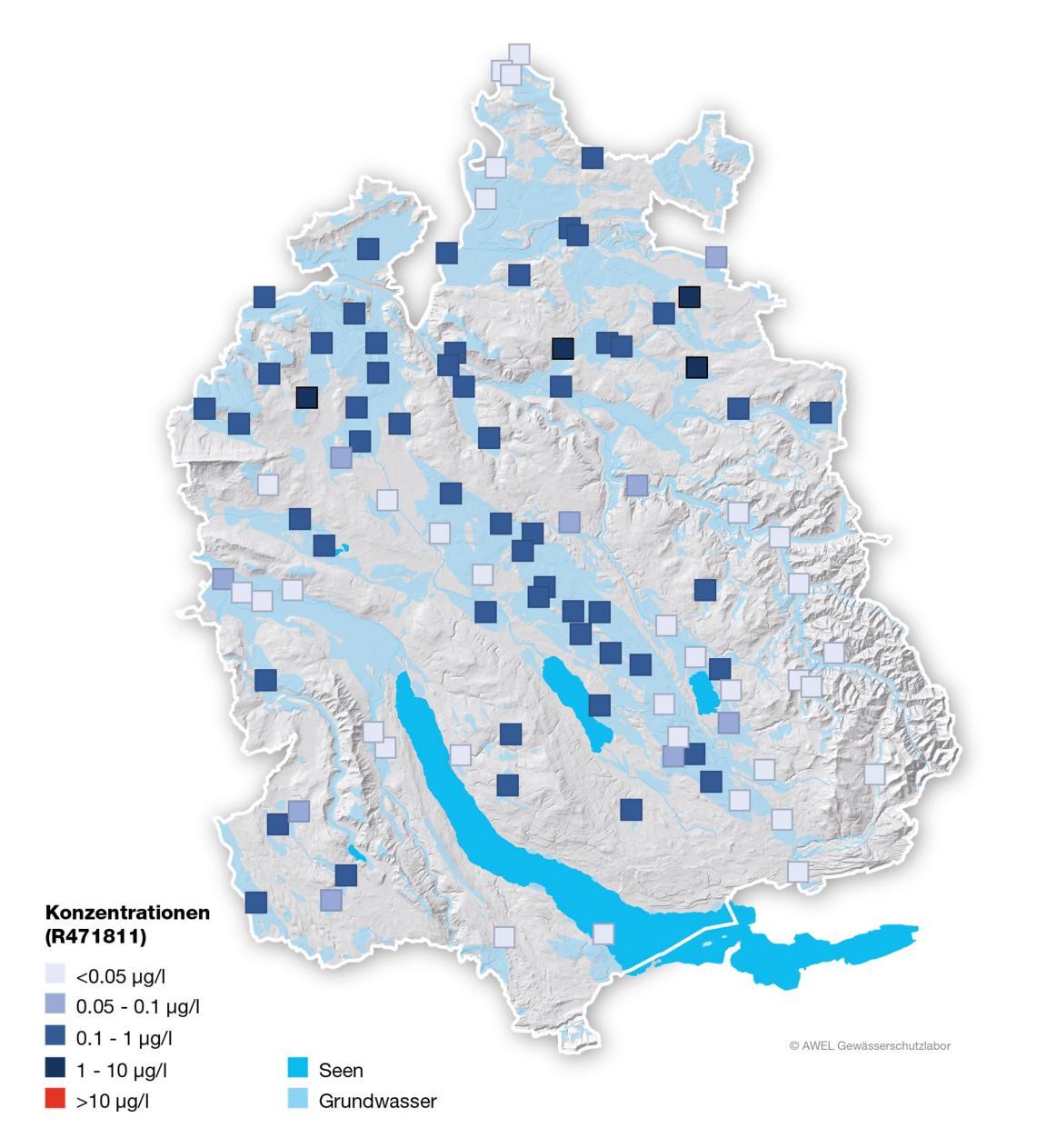 Bei den Pestiziden sind nur vereinzelt Wirkstoffe messbar und diese überschreiten den Anforderungswert selten. Es werden aber vermehrt Abbauprodukte nachgewiesen, bei denen die Beurteilung erst teilweise geregelt ist. Die Belastungen aus Siedlungsgebieten und Industrie (z.B. durch Lösungsmittel, Medikamente) sind auf tiefem Niveau konstant geblieben. Gemäss aktuellem Wissensstand und heutiger Rechtslage sind keine gesundheitlichen Beeinträchtigungen zu erwarten. Dennoch sind Mikroverunreinigungen im Grundwasser gemäss dem Vorsorgeprinzip generell unerwünscht.