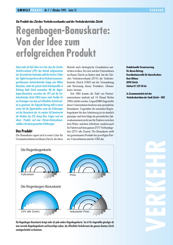 Ein Produkt des Zürcher Verkehrsverbundes und der Verkehrsbetriebe Zürich - Regenbogen-Bonuskarte: Von der Idee zum erfolgreichen Produkt