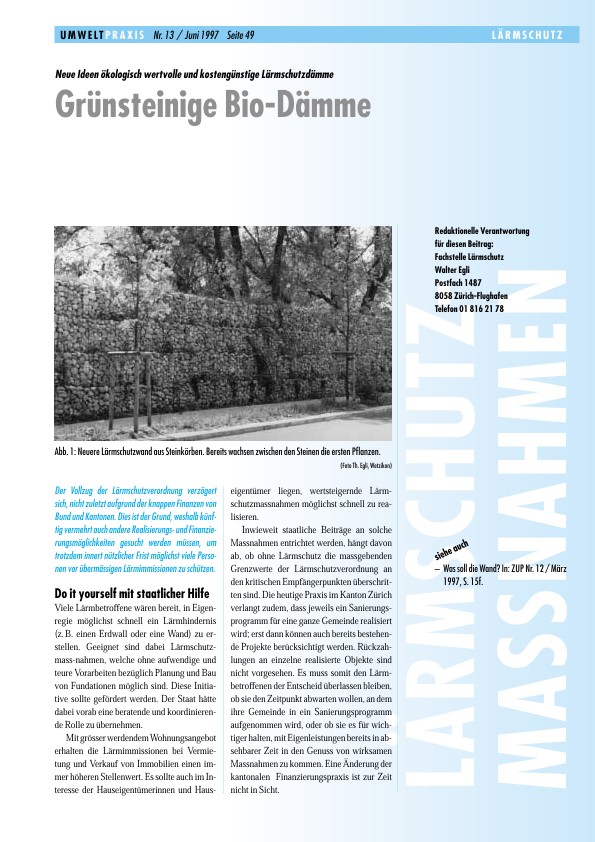 Grünsteinige Bio-Dämme: Neue Ideen ökologisch wertvolle und kostengünstige Lärmschutzdämme