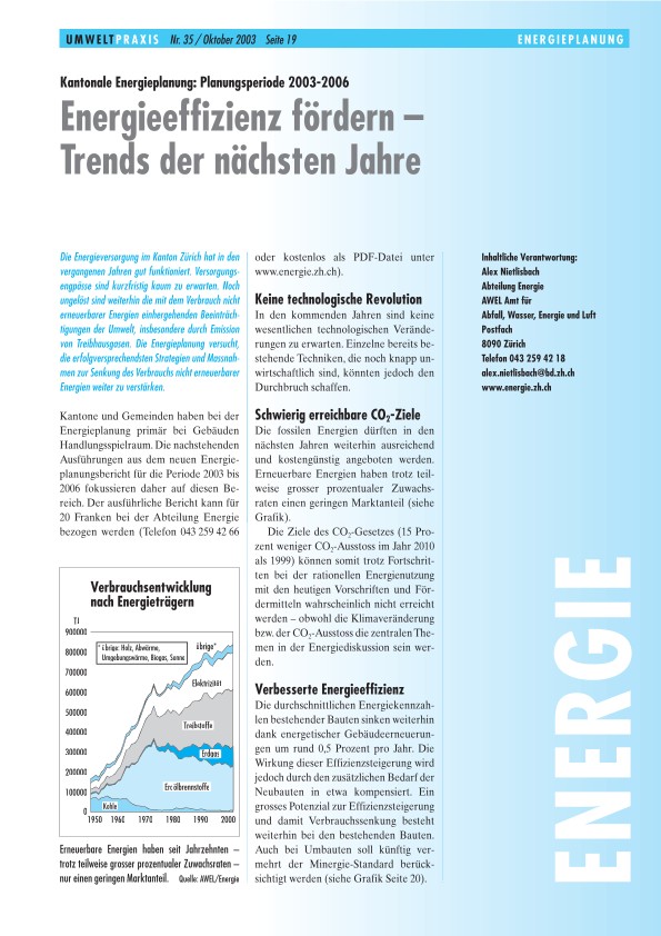 Kantonale Energieplanung , Planungsperiode 2003-2006: Energieeffizienz fördern – Trends der nächsten Jahre
