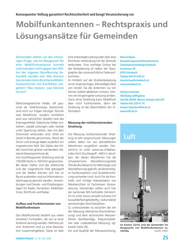 Mobilfunkantennen – Rechtspraxis und Lösungsansätze für Gemeinden: Konsequenter Vollzug garantiert Rechtssicherheit und beugt Verunsicherung vor