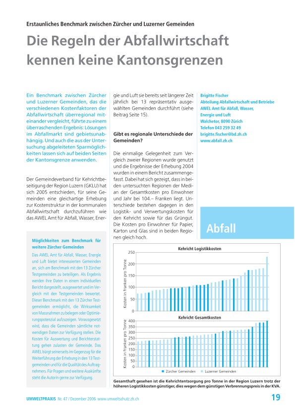 Ein Benchmark zwischen Zürcher und Luzerner Gemeinden, das die verschiedenen Kostenfaktoren der Abfallwirtschaft überregional miteinander vergleicht, führte zu einem überraschenden Ergebnis: Lösungen im Abfallmarkt sind gebietsunabhängig. Und auch die aus der Untersuchung abgeleiteten Sparmöglichkeiten lassen sich auf beiden Seiten der Kantonsgrenze anwenden.