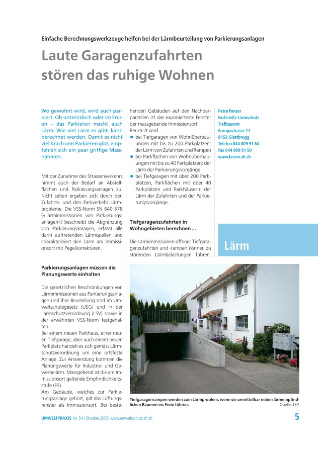 Einfache Berechnungswerkzeuge helfen bei der Lärmbeurteilung von Parkierungsanlagen: Laute Garagenzufahrten stören das ruhige Wohnen