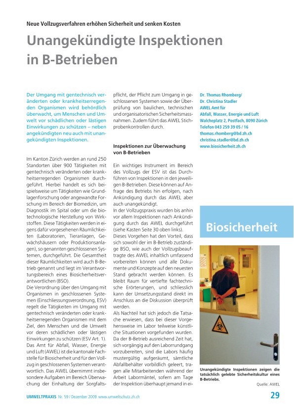 Der Umgang mit gentechnisch veränderten oder krankheitserregenden Organismen wird behördlich überwacht, um Menschen und Umwelt vor schädlichen oder lästigen Einwirkungen zu schützen – neben angekündigten neu auch mit unangekündigten Inspektionen.