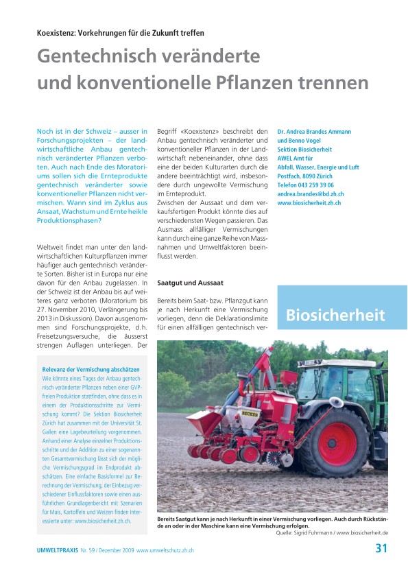 Gentechnisch veränderte und konventionelle Pflanzen trennen - Koexistenz: Vorkehrungen für die Zukunft treffen