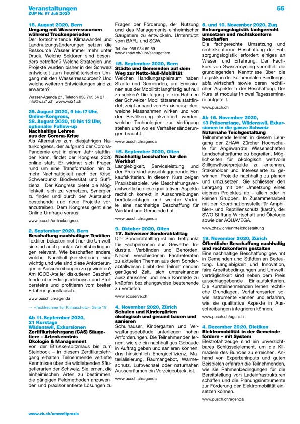 Zürcher Umweltpraxis 97: Veranstaltungen