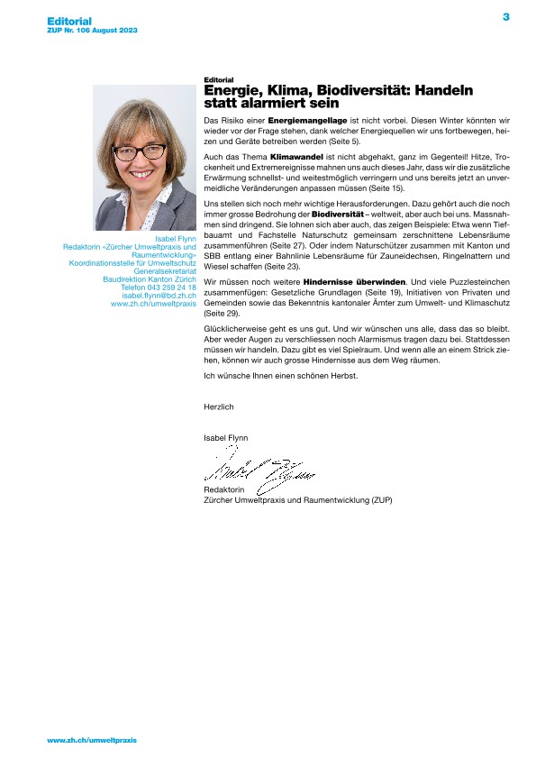 Das Risiko einer Energiemangellage ist nicht vorbei. Und auch das Thema Klimawandel ist nicht abgehakt, ganz im Gegenteil! Uns stellen sich noch mehr wichtige Herausforderungen. Dazu gehört auch die noch immer grosse Bedrohung der Biodiversität – weltweit, aber auch bei uns.
