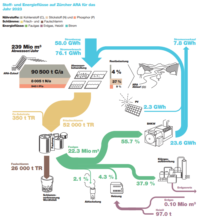 Bei der Reinigung des Abwassers fallen in den kommunalen ARA von Zürich jährlich etwa 500'000 Kubikmeter flüssiger Klärschlamm an. Dieser enthält 95 Prozent Wasser und 5 Prozent respektive 25'000 Tonnen Trockensubstanz. Der gesamte Klärschlamm wird seit 2015 in der Klärschlammverwertungsanlage (KSV) im Klärwerk Zürich Werdhölzli verwertet. Dies ermöglicht eine umweltschonende Entsorgung und die spätere Rückgewinnung der wertvollen und knappen Ressource Phosphor.