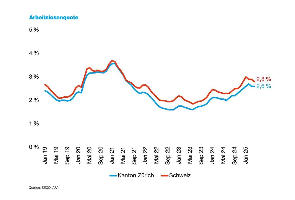 | Arbeitslosenquote | SECO | 2,1% | 2,3% | 2,6% | 2,5% |