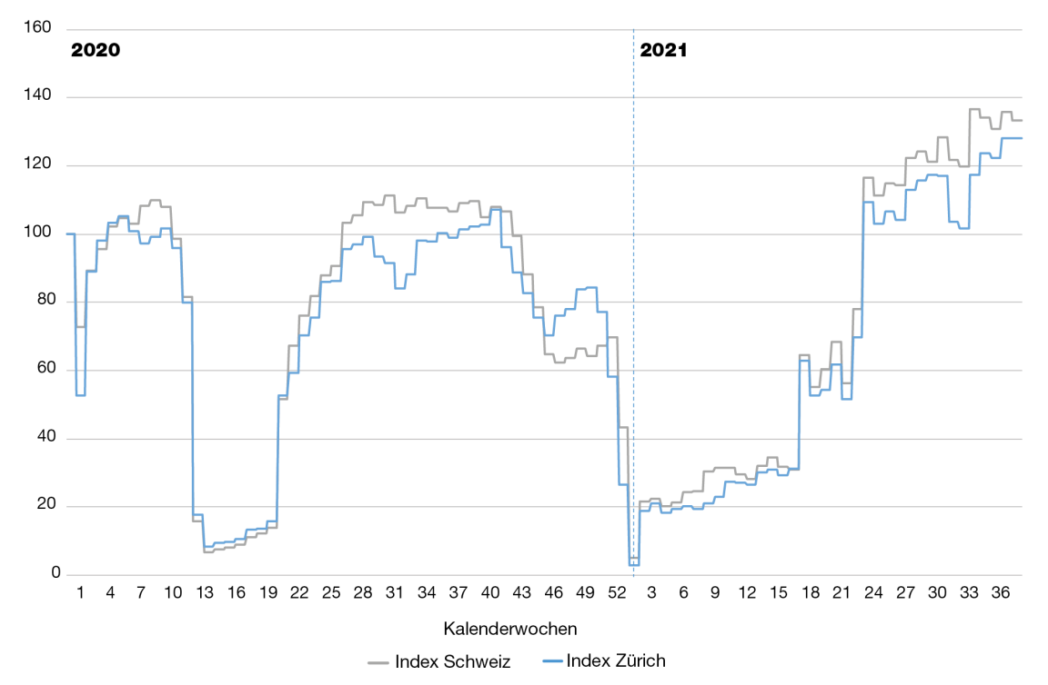 Nachdem die Anzahl der ausgeschriebenen offenen Stellen sowohl im Kanton Zürich als auch in der Schweiz im Frühling und Anfang Sommer rückläufig war, ist seit August ein Anstieg ersichtlich.